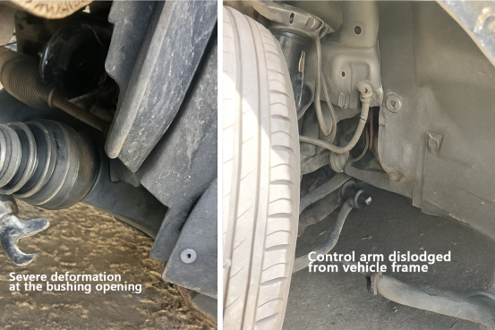 Поради својата конфигурација со отворен дизајн, черупката на контролната рака може да доживее деформација или дури и поместување при одредени влијанија на оптоварување. Таквиот дефект може потенцијално да ја влоши штетата од несреќа и да претставува опасност по безбедноста.